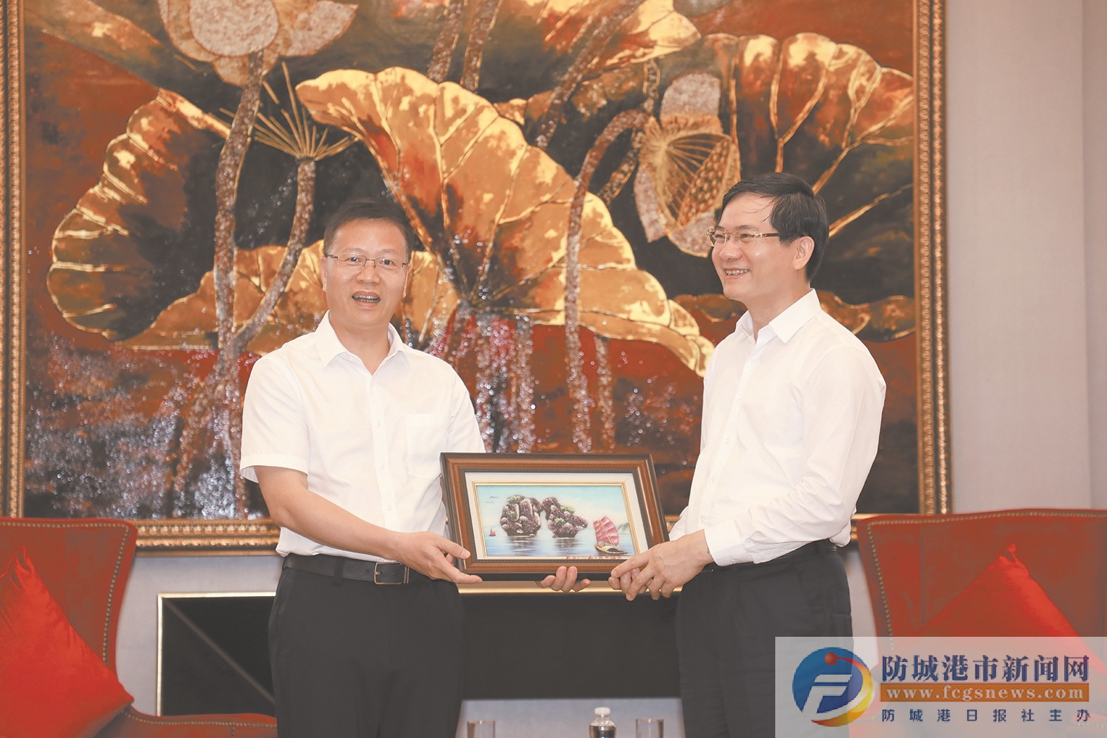 武決進對譚丕創一行的到訪表示熱烈歡迎,高度評價了兩地在各個領域合作所取得的成果,對譚丕創提出的合作建議表示贊同。他說,在越中友好合作不斷深化的大背景下,兩市開展務實合作具有巨大潛力和廣闊空間,對未來合作充滿期待。希望以防城港市代表團此訪為契機,進一步加強兩市友好往來與合作交流,不斷促進雙方在跨境旅游、經貿等領域的務實合作,取得更多合作成果,實現優勢互補、互利共贏,推動兩市友好交流合作邁上新水平。