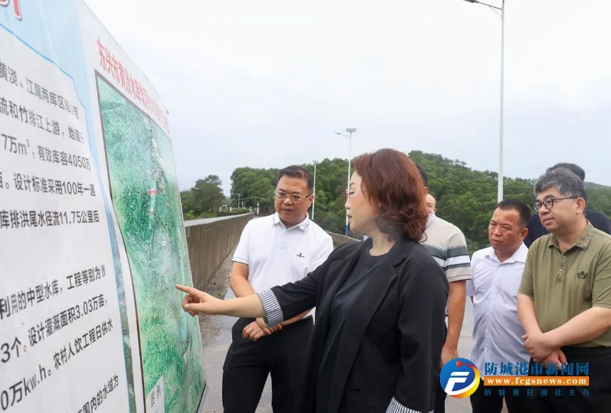 圖為黃江在東興市黃淡水庫調研檢查防汛防災工作。