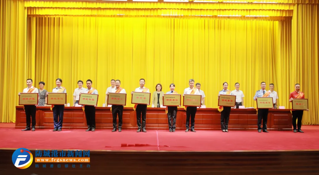 與會市領導為受表彰的示范區示范單位、模范集體和模范個人頒發牌匾、證書。防城港日報全媒體記者 韋榮合 攝