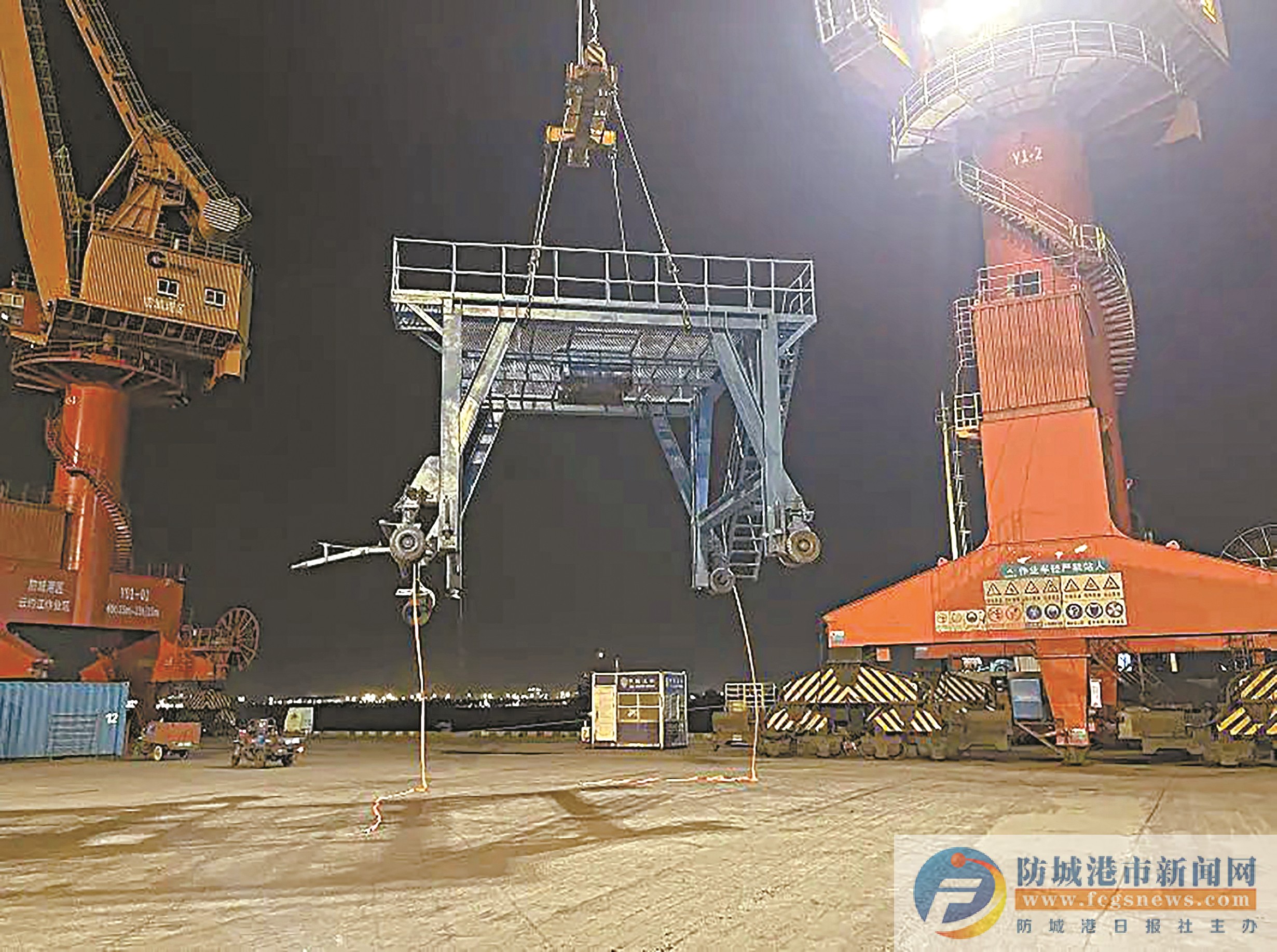 近日,防城港碼頭多部門協同配合,通過海運集裝箱的方式,成功將一座自重約30噸的高架漏斗從18號泊位轉運至云約江1號泊位,全程用時4.5小時。