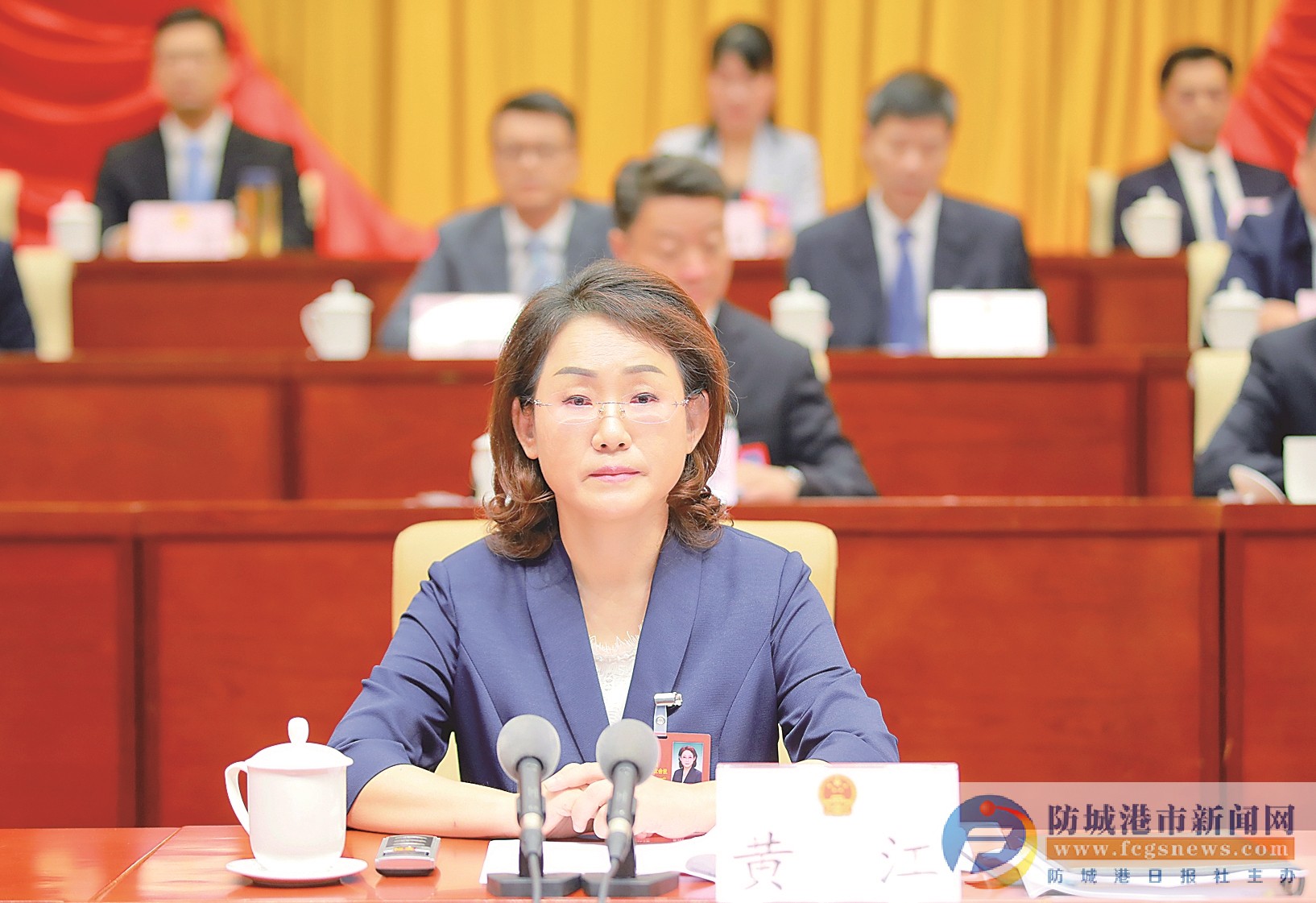 9月26日下午,防城港市第七屆人民代表大會(huì)第六次會(huì)議在市人民會(huì)堂開幕。大會(huì)主席團(tuán)常務(wù)主席、執(zhí)行主席黃江主持會(huì)議。 防城港日?qǐng)?bào)全媒體記者 韋榮合 攝