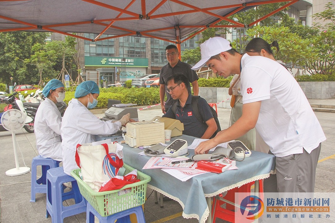 9月26日,市中心血站聯(lián)合市紅十字會在紅樹林大廈旁開展無償獻(xiàn)血活動。圖為參與獻(xiàn)血的市民正在進(jìn)行獻(xiàn)血前的登記、體檢。
