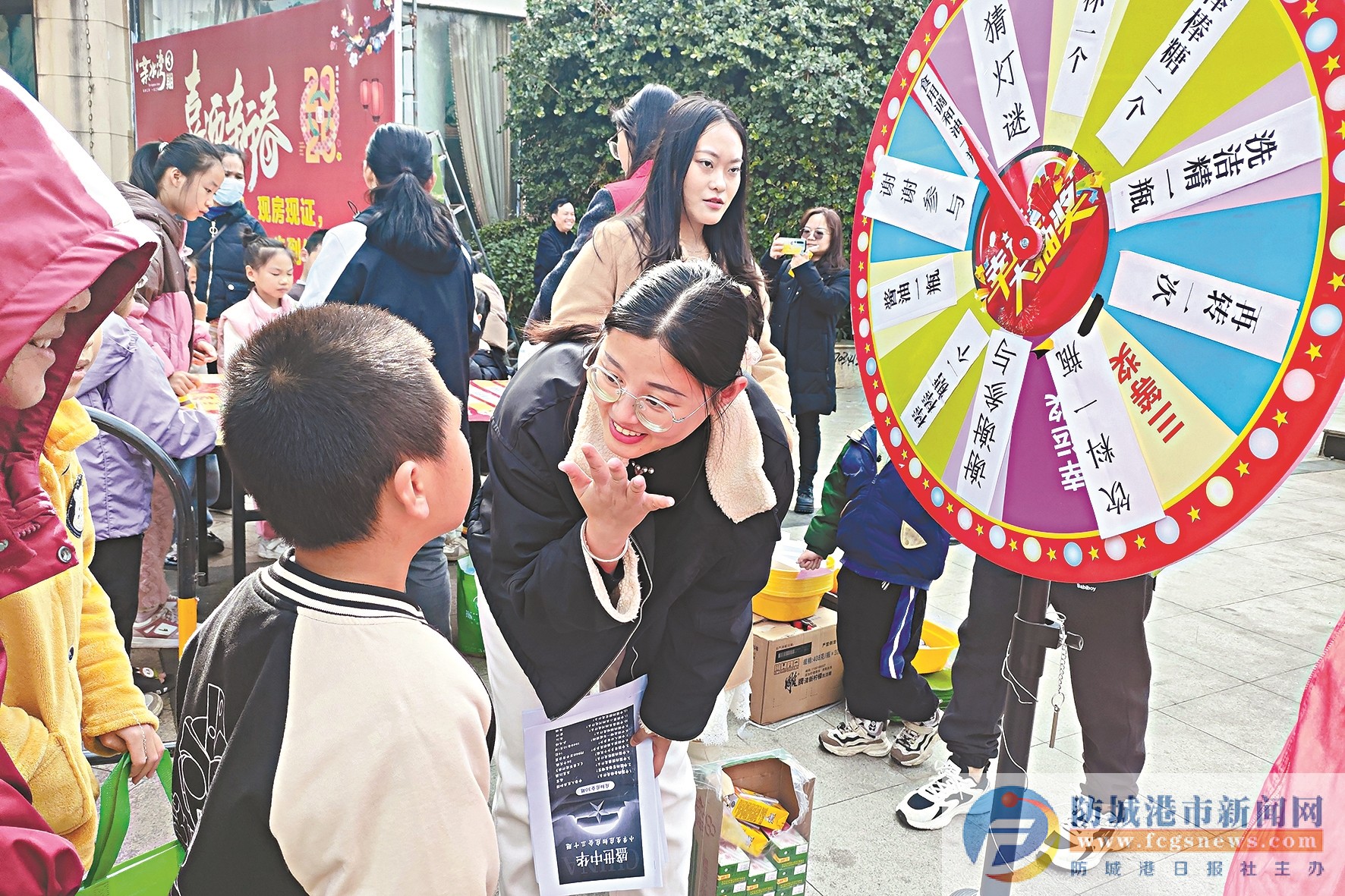 活動(dòng)現(xiàn)場洋溢著濃厚的節(jié)日氛圍。趣味套圈、趣味轉(zhuǎn)盤、好運(yùn)滾滾樂等互動(dòng)游戲攤位前人頭攢動(dòng),參與者熱情高漲。市民們或瞄準(zhǔn)目標(biāo)拋出套圈,或屏息凝神轉(zhuǎn)動(dòng)輪盤,歡笑聲、喝彩聲此起彼伏。活動(dòng)設(shè)置的獎(jiǎng)品既有鴨子、大米、醬油、抽紙等生活用品,也有寓意吉祥的元宵節(jié)特色禮品,既接地氣又暖人心。