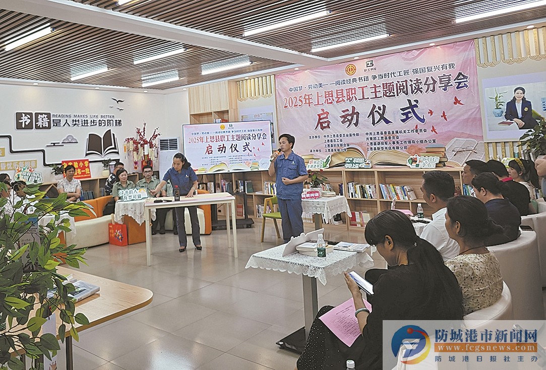 4月21日,上思縣委宣傳部、上思縣直屬機關工委、上思縣總工會等多部門聯(lián)合開展的“中國夢·勞動美——閱讀經(jīng)典書籍 爭當時代工匠 強國復興有我”2025年上思縣職工主題閱讀分享會在上思縣實驗小學博閱閱讀工作坊啟動。本報記者 陸飛伶 攝
