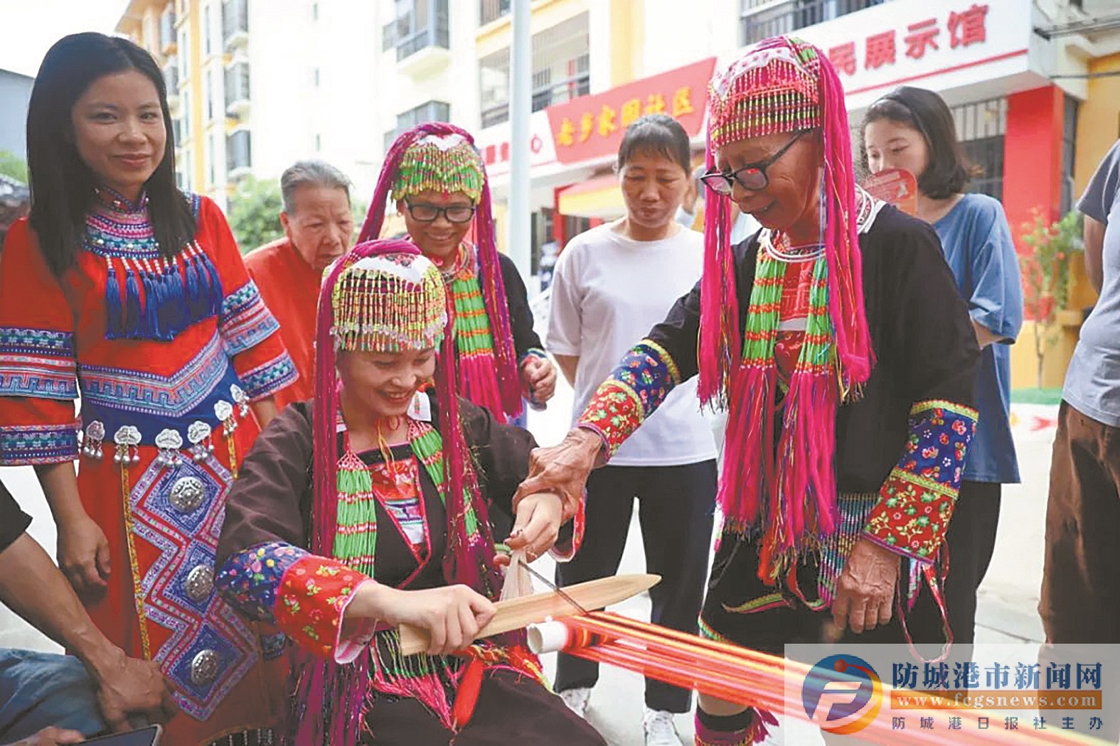 5月8日,上思縣老鄉(xiāng)家園社區(qū)在黨建廣場(chǎng)舉辦了“同心石榴 睦鄰友好”老鄉(xiāng)同心節(jié)活動(dòng),各族群眾歡聚一堂包餃子、吃長(zhǎng)桌宴、跳竹竿舞等。圖為各族婦女熱情交流瑤繡刺繡技藝。