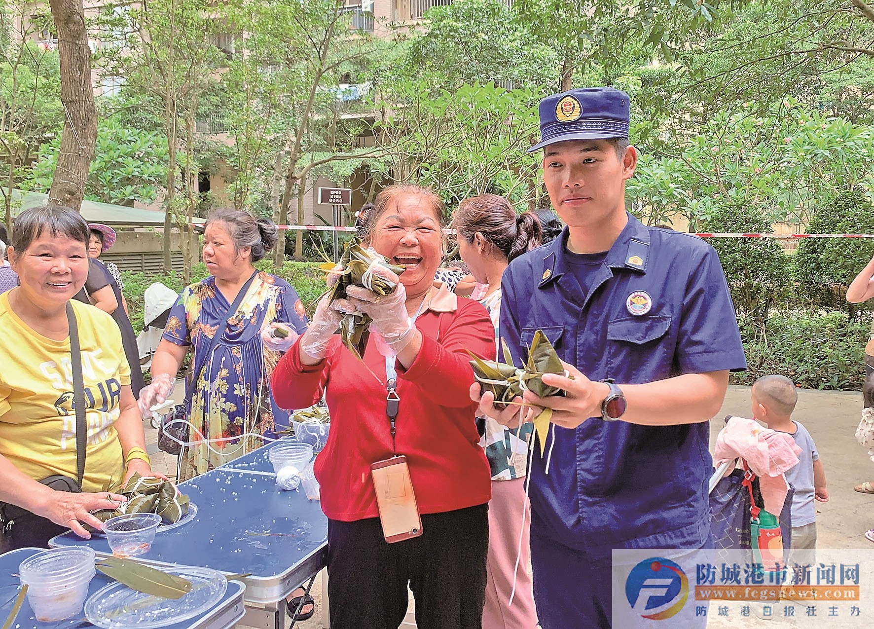 5月30日,港口區消防救援大隊組織消防員走進港口區陽光海岸小區,與小區居民共同開展“粽情端午”包粽子活動,在歡樂的氛圍中宣傳消防安全知識。活動間隙,消防宣講員結合端午節居家用火用電增多的情況,重點講解燃氣安全、電動車充電等知識,在小區樓道、電梯口張貼消防安全海報,讓安全提示隨處可見?;顒赢斕旃舶l放消防宣傳資料200余份。