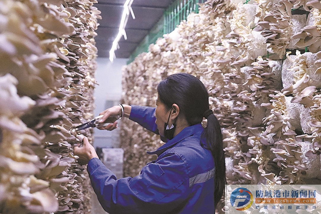 我市食用菌產業以廣西強豐生物科技有限公司為龍頭引領,帶動港口區、上思縣的多個村(社區)發展食用菌產業,其余由各縣(市、區)農戶零散種植形成補充。農業龍頭企業、村(社區)集體與農戶通過技術合作、土地整合等方式協同發力,共同做大做強全市食用菌產業,小小食用菌鋪就了鄉村全面振興的“致富路”。