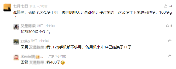@七月七日:誰懂啊,我換了這么多手機,微信的聊天記錄都是遷移過來的,這么多年下來越積越多,100多G了。