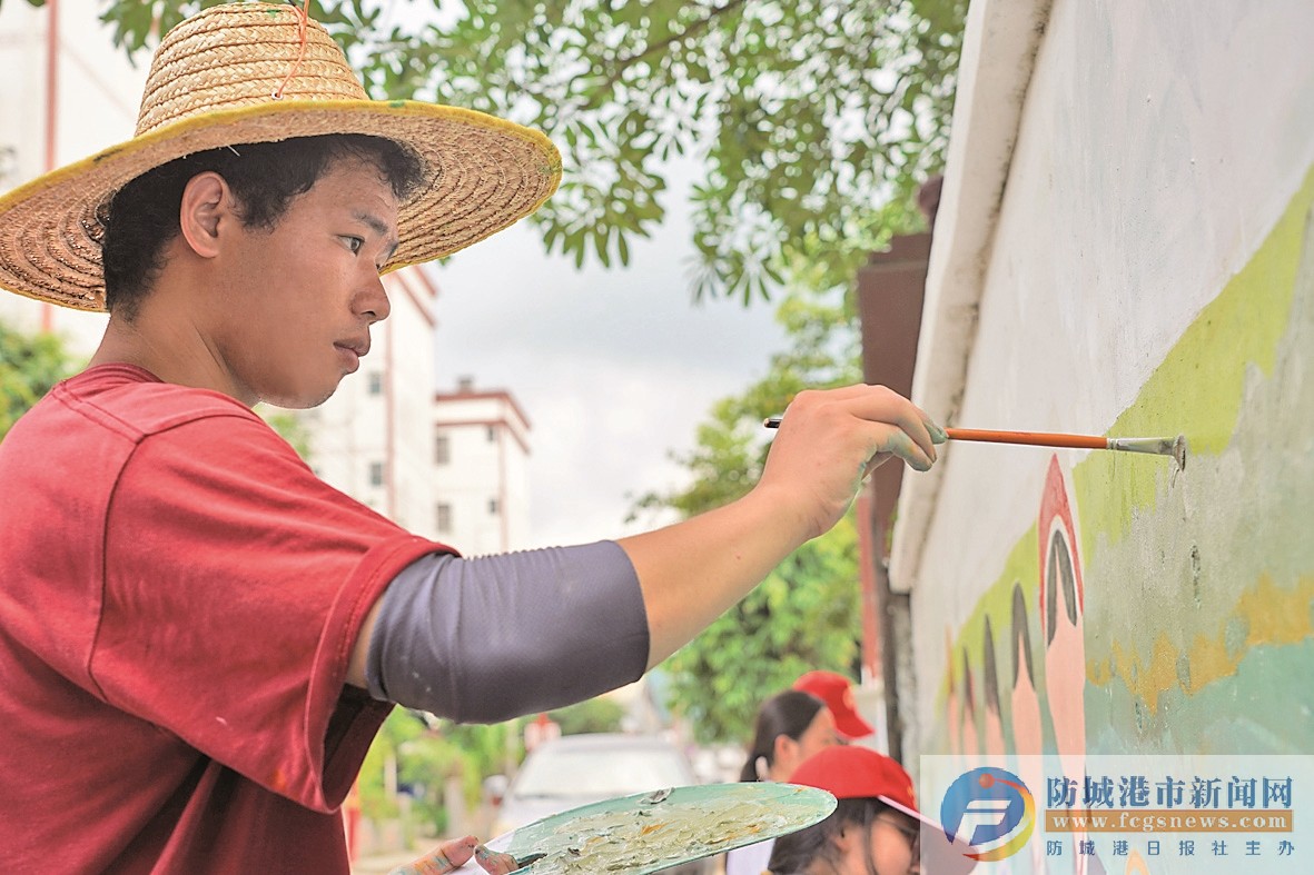 青春畫筆彩繪瑤鄉 文明新景躍然墻上