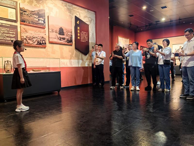 在通道轉兵紀念館,聽“紅領巾”講解員講述中央紅軍過通道的故事。