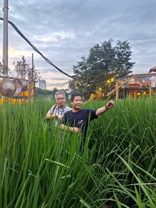 在袁隆平親筆題詞的“農家院”里,稻禾與人同高。徐渭明 攝