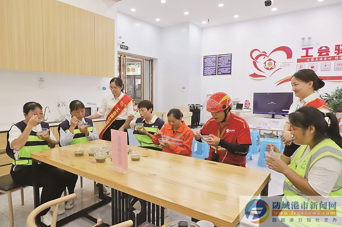 本報訊(記者 黃祖梅 通訊員 黃 翔 黃凱詩) “天太熱了,這口糖水喝下去,從里到外都舒坦!”近日,剛送完外賣的騎手李師傅,在防城港移動城區(qū)分公司北部灣營業(yè)廳工會驛站里,接過志愿者遞上冰鎮(zhèn)的綠豆糖水暢飲。驛站內(nèi),早已聚集了不少像李師傅這樣的戶外勞動者(見上圖)。