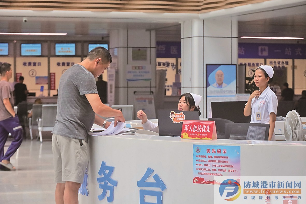 在防城港市第一人民醫院門診大廳,掛號處、藥房、檢查科室等顯眼位置“軍人依法優先”標識清晰可見,院內像這樣的規范標識超過150處。這些標識不僅是該院依法保障軍人合法權益的體現,更是將服務軍人軍屬、退役軍人及其他優撫對象優待工作制度化、顯性化的重要標志。