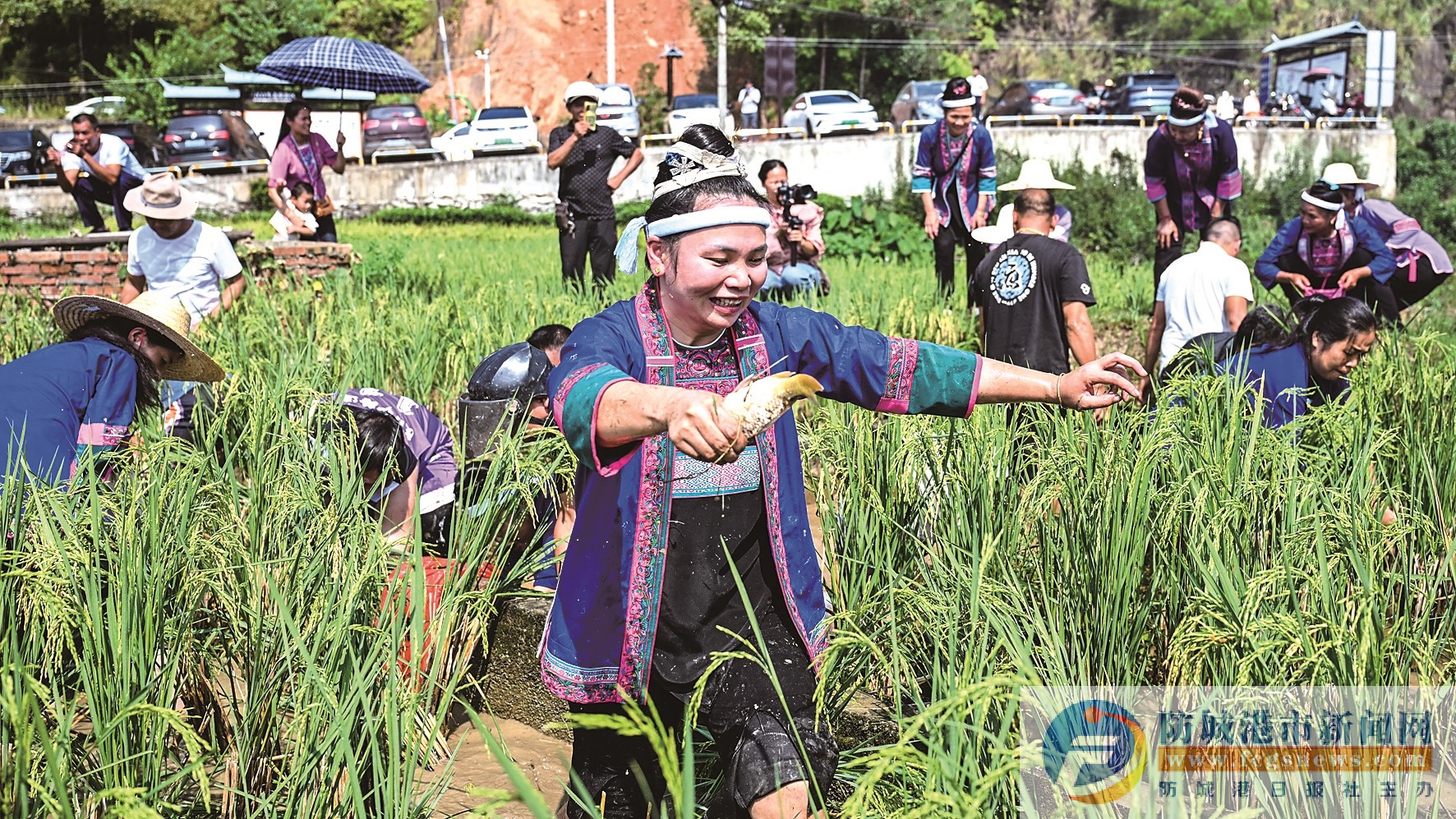 10月17日,在良口鄉產口村,侗族婦女在參加摸魚比賽。